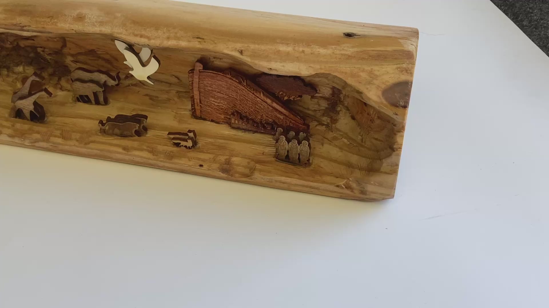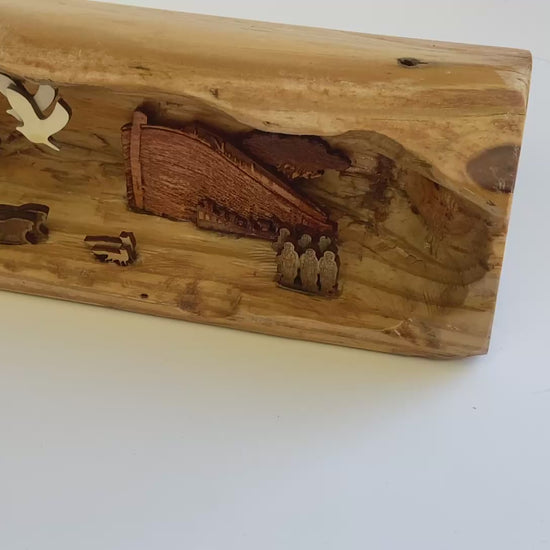 Hand-carved from natural wood and intricately laser-engraved, this Noah's Ark depiction captures a cherished biblical moment. Each figure—from the animals to Noah's family creates a striking focal point that celebrates faith and craftsmanship. Perfect as a meaningful gift for collectors of religious art, a decorative accent for home or office, or a treasured keepsake for those who value handmade quality. The warm, natural wood tones and engraving work together to bring this timeless story to life in a way that mass-produced pieces simply cannot match.