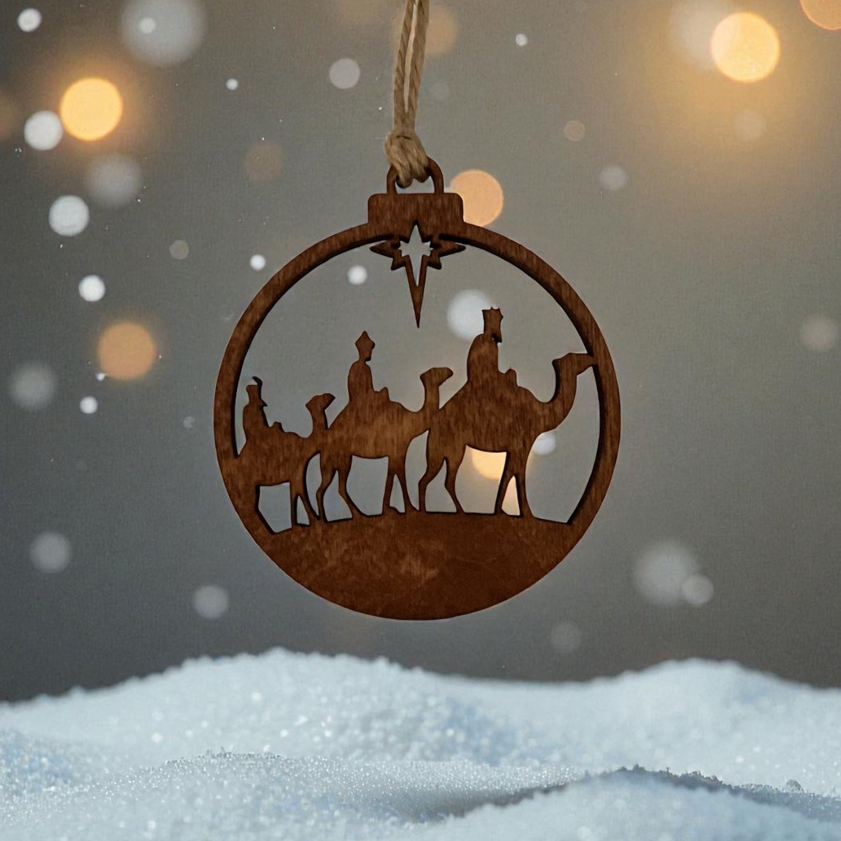 Flat wooden Christmas ornaments with a variety of nativity scenes. All hand stained and finished. Round and 1/4” thick x 2 1/2” in diameter.